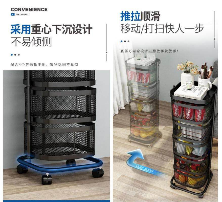 说到蔬菜置物架,属于厨房收纳界里的“大姐”,那简直就是厨房收纳神器!大容量的多层收纳,仿佛可以装下一周的瓜果蔬菜。带万向轮随心移动,清洁时也很方便。两边是围边镂空设计,放置瓜果蔬菜透气性好。
